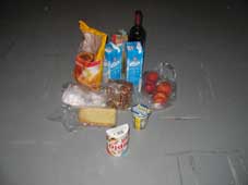 Eine Wohnsiedlung mit den Lebensmitteln im Wohnzimmer gebaut.