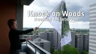 Yvette Poorter's para-site residency came out of a suitcase inside the apartment of Pilotprojekt Gropiusstadt. “Erection in Gropiusstadt” is the 16th site/intervention of Knock on Woods International Residency and Dwelling for Intervals. The Knock On Woods cabin was brought to an open field and the forest of tree-flags staked claim to the land. Resident artists worked together to erect the Dwelling for Intervals in Gropiusstadt.